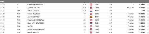 Many riders made smart choices and finished strong in a shorter distance (at the Fat Viking you can start in the 150km or 100km but finish in the 100km or 50km - obviously not in the competition ranking. This is indicated by N/A and Finisher).